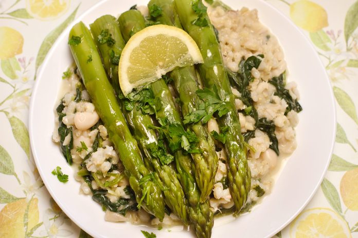 Fazole se špenátem a chřestem