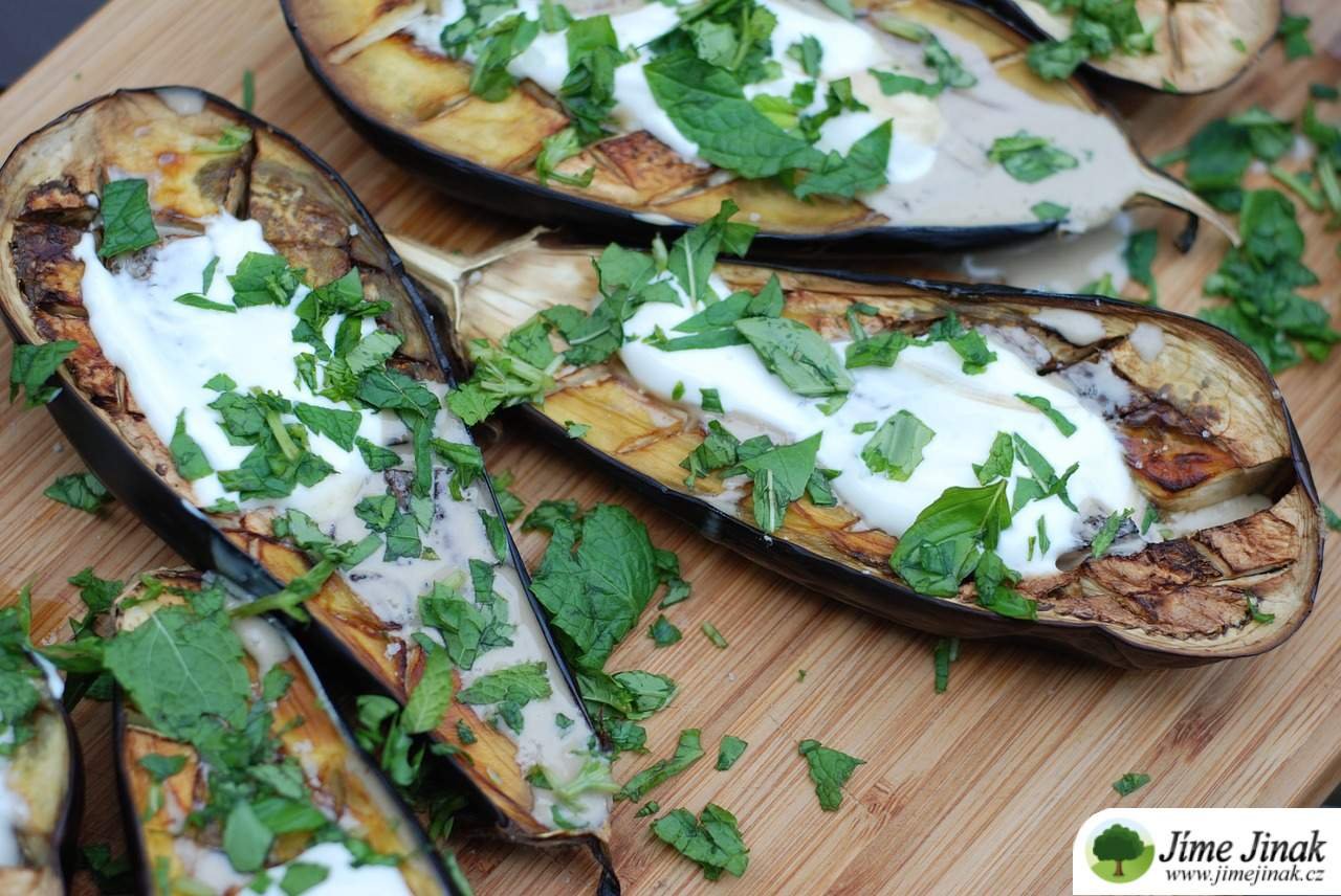 Baba Ganoush je orientální dip z pečených lilků, česneku, tahini, soli a citronové šťávy. Výborný k plackám, jako pomazánka na slané palačinky, tortilly, do wrapu nebo jen tak jako dip k zelenině.