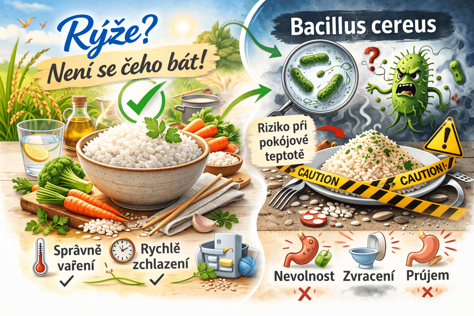 Klíčový hráč je bakterie Bacillus cereus, která se v syrové rýži přirozeně vyskytuje ve formě odolných spor. Ty přežijí vaření. Pokud pak uvařená rýže dlouho stojí při pokojové teplotě, bakterie se teoreticky mohou množit a produkovat toxiny. Záludnost spočívá v tom, že tyto toxiny jsou poměrně tepelně odolné – pouhé ohřátí je nezničí. Důležité je ale pochopit, kde riziko skutečně leží: není v ohřívání samotném, ale potenciálně v nesprávném skladování v době mezi vařením a ohřátím.