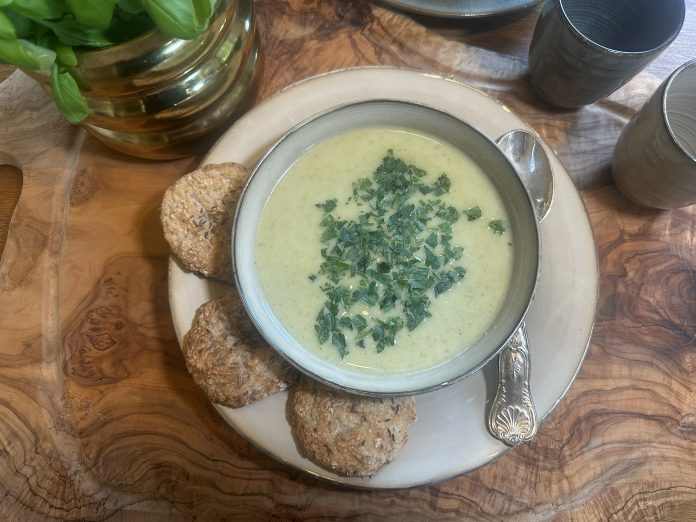 - Poté vše rozmixujeme do hladkého krému. Pokud je polévka příliš hustá, přidáme trochu vývaru.
