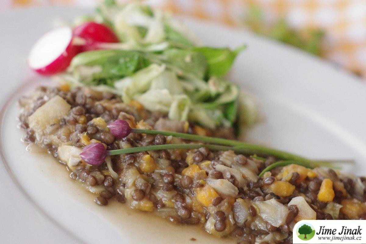 - Vaříme 10 minut, pak přidáme uvařenou čočku. Vody z čočky dáme jen tolik, aby zelenina s čočkou byla trošku ponořená, a nebyla z pokrmu polévka.