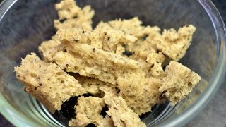 - Natrhejte chléb a dejte ho do misky se sójovým mlékem, aby se nacucal a změkl.
