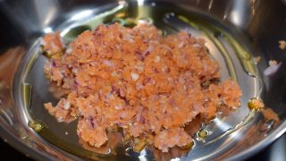 - Na pánev dejte olej, přidejte najemno nasekanou cibuli, citrónovou kůru, česnek a mrkev. Osmahněte. Přidejte trochu mleté papriky, pepř, sůl a znovu osmahněte.