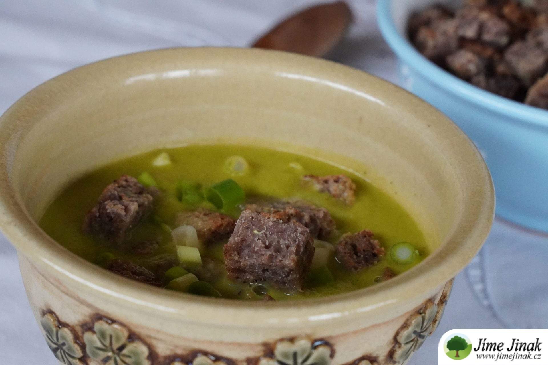 - Polévku podáváme sypanou jarní cibulkou a chlebovými krutony.