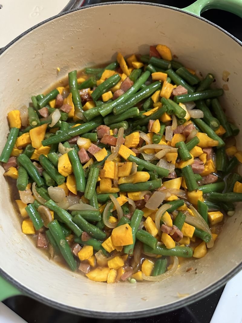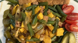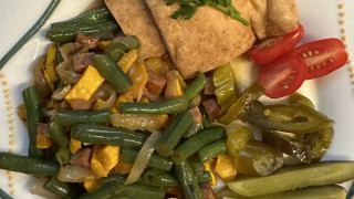 • Můžete přidat mangold, ten bývá ve stejnou dobu jako dozrávají fazolky.