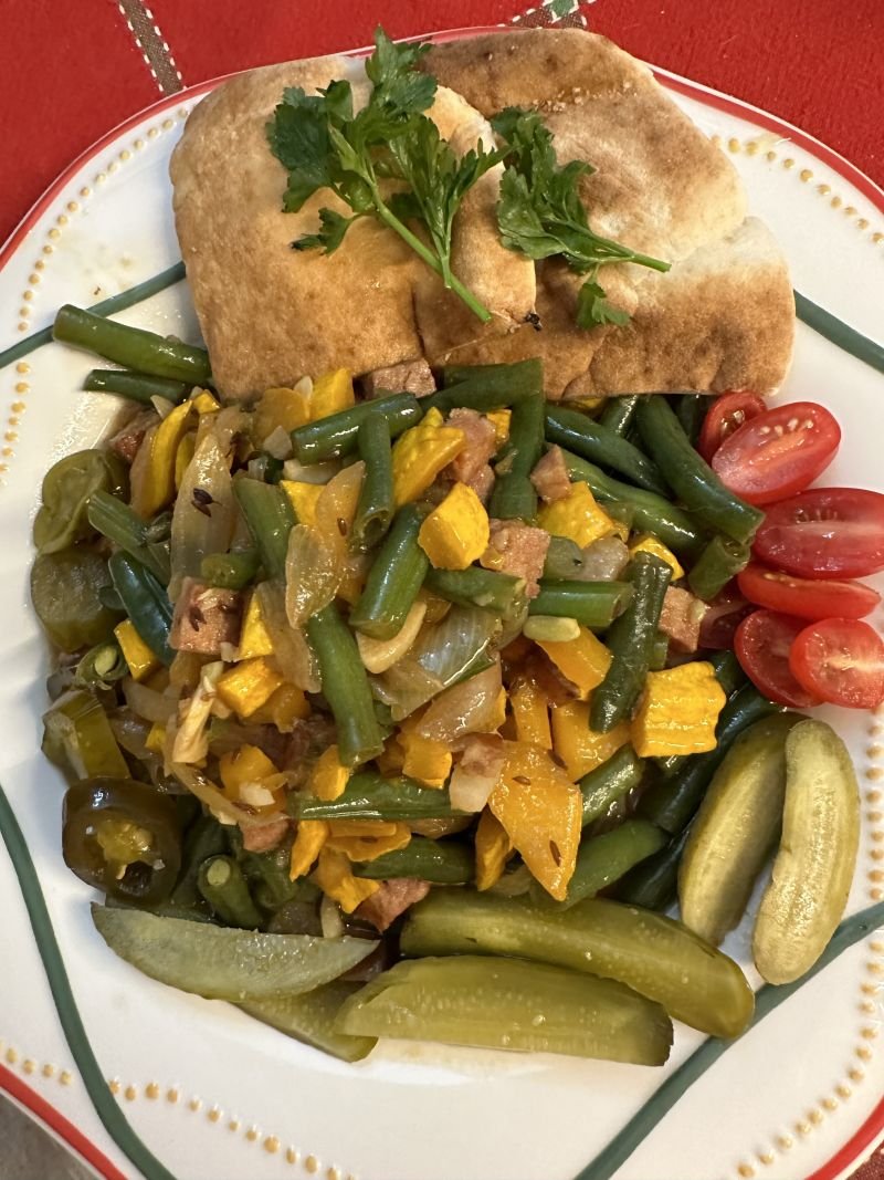 • Fazolky a cuketu s tempehem si dáváme jako bílkovinnou a zeleninovou část k rýži či jiné obilovině a doplňujeme ještě kvašenou zeleninou.