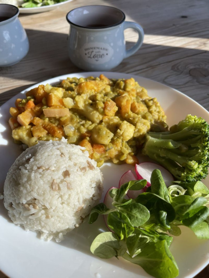 - Hodí se také k jakékoliv omáčce nebo zeleninovému jídlu a obilovině (u nás byl k vařené pohance a dušené mrkvičce).
