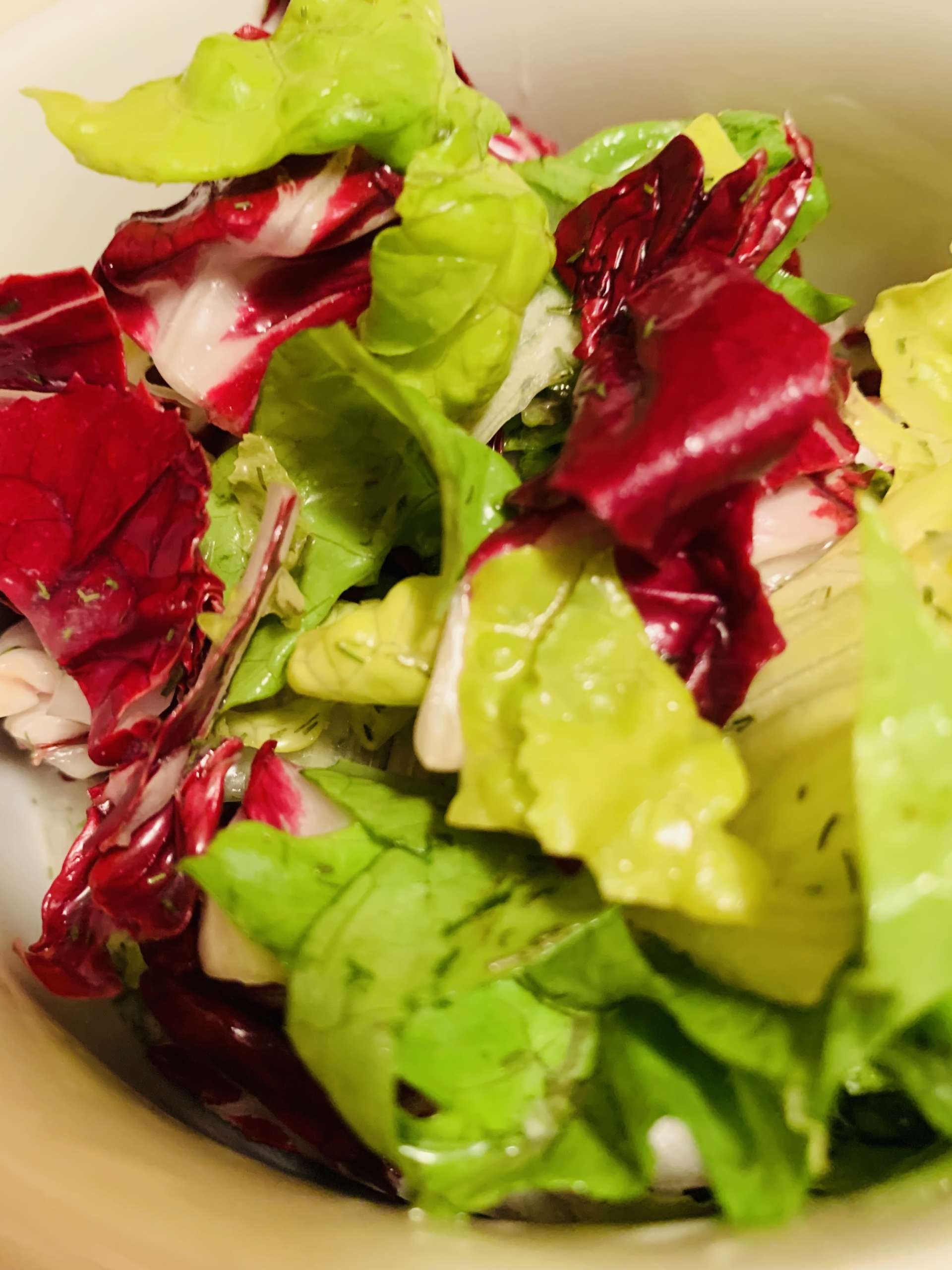 Já jsem byla zase zvyklá, že se doma dělal salát s kyškou. Ta se rozmíchala s trochou soli a pepře a šup omytý a natrhaný salát do ní. Vím, že se tady vyhýbáme mléku a všem výrobkům s ní, ale já si stejně občas udělám salát s acidofilním mlékem. Naštěstí nejsem na mléko alergická, tak si myslím, že jednou načas si zavzpomínám na pochoutku z dětství.