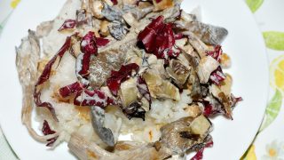 - Když je hlíva měkká, přidejte nasekanou spodní část čekanky, osolte, opepřete a znovu orestujte. Přidejte cizrnu, sójovou smetanu, promíchejte, a chvíli povařte.