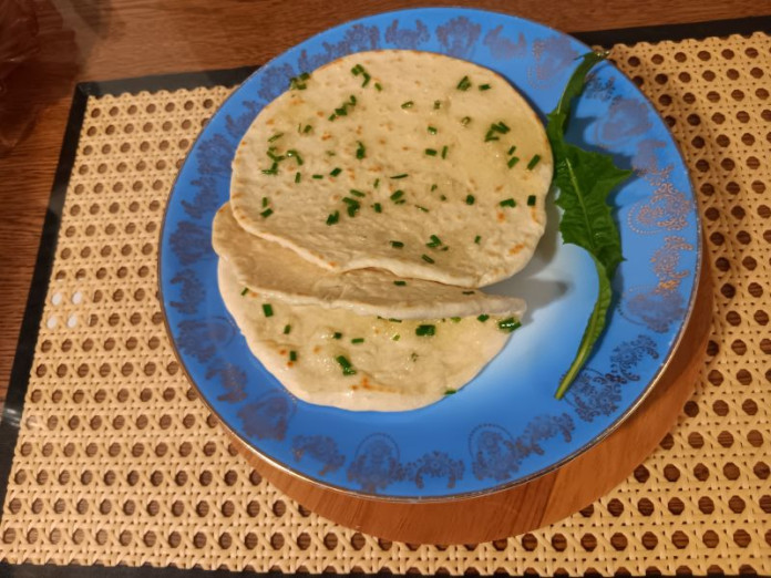- Poté rozválejte tenčí placky asi 12 cm v průměru. Nechte nahřát pánev, připravenou placičku dejte na pánev, přikryjte poklicí a pečte z jedné strany. Až se na povrchu začnou tvořit bubliny a puchýřky, placku otočte a dopečte z druhé strany.