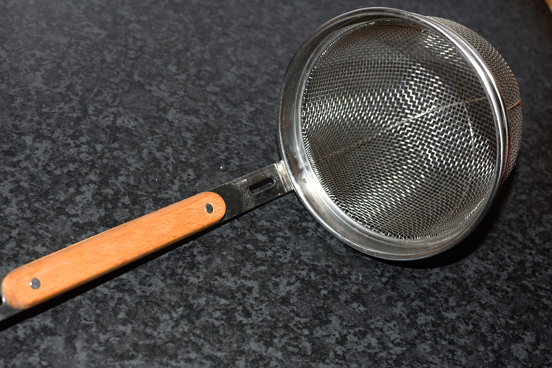 Tento cedník se používá k vaření nebo ohřívání v hrnci a následnému scezení. Cedník je vyroben zkvalitní nerezové oceli a má pevnou dřevěnou rukojeť s háčkem na konci pro snadné skladování v kuchyni.