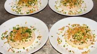 - Povrch opepřete, posypejte pažitkou a pistáciovými oříšky.