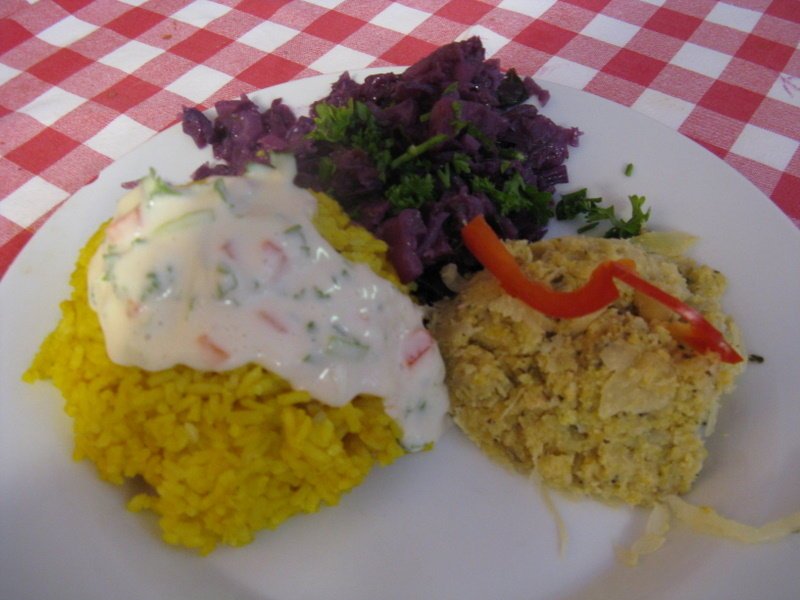 cizrnové karbanátky s rýží slunečnicovým semínkem, červené zelí s křenem | ||