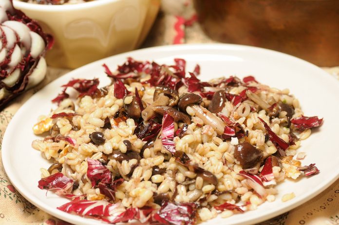 Ječmen s houbami pioppini, červenou čekankou a vlašskými ořechy