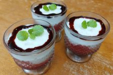 - Hotový pudink vypneme a nalijeme do připravených pohárků, kam jsme na dno dali marmeládu.