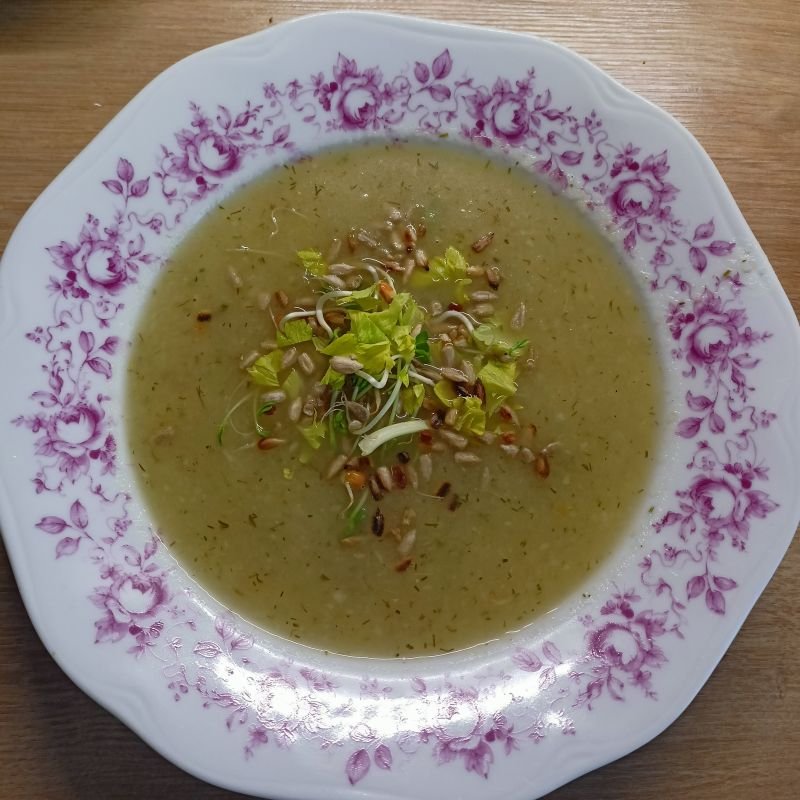 - Přidáme na jemno nasekaný kopr a polévka je hotová. Nám chutná i bez dalších dochucovadel, je příjemně sladká a lahodná. Začátečníci si mohou dochutit troškou umeocta a jablečného octa.