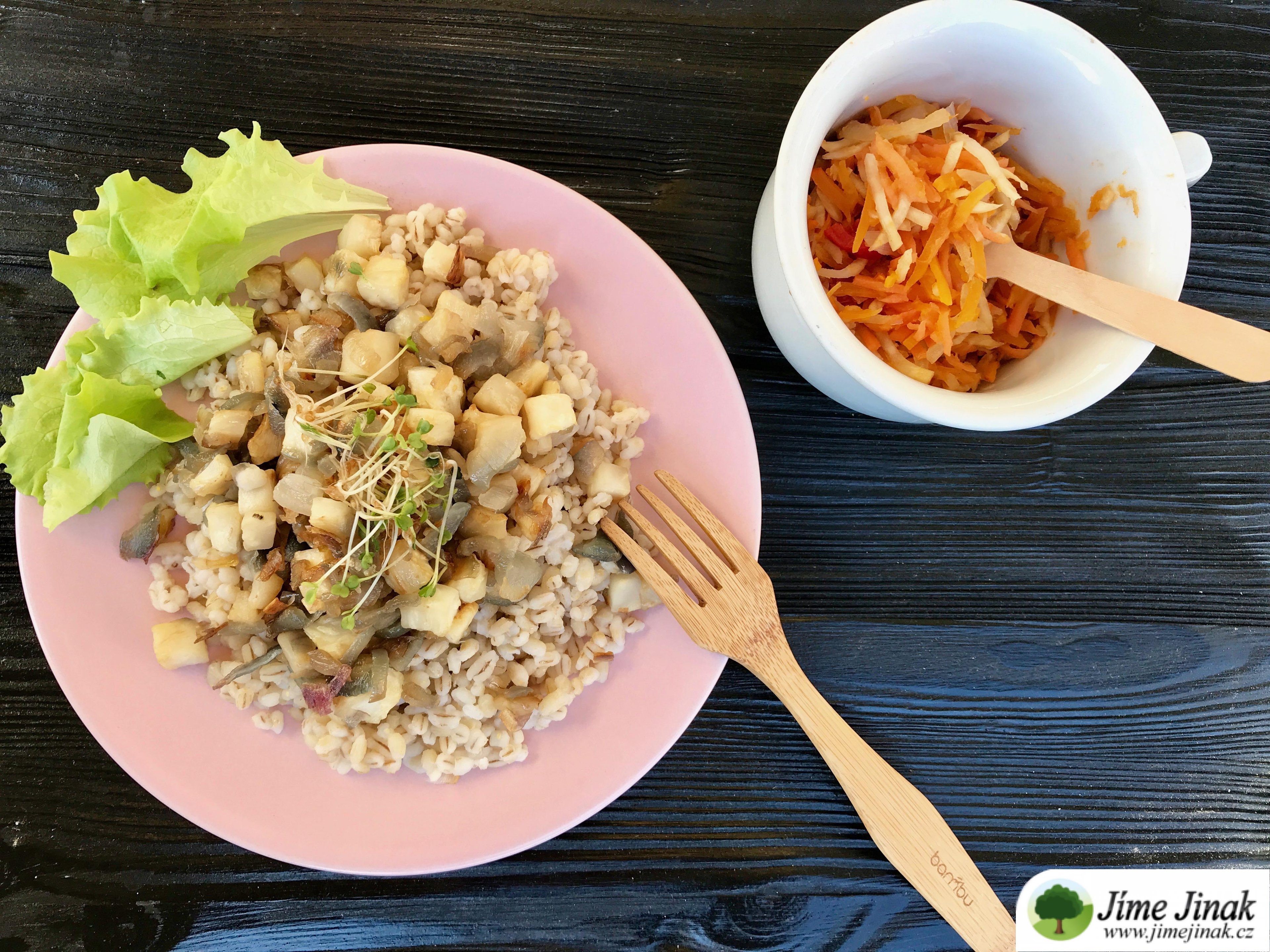 - Uvařené kroupy dáme na talíř, servírujeme s orestovanou zeleninou, salátem, klíčky a semínky.