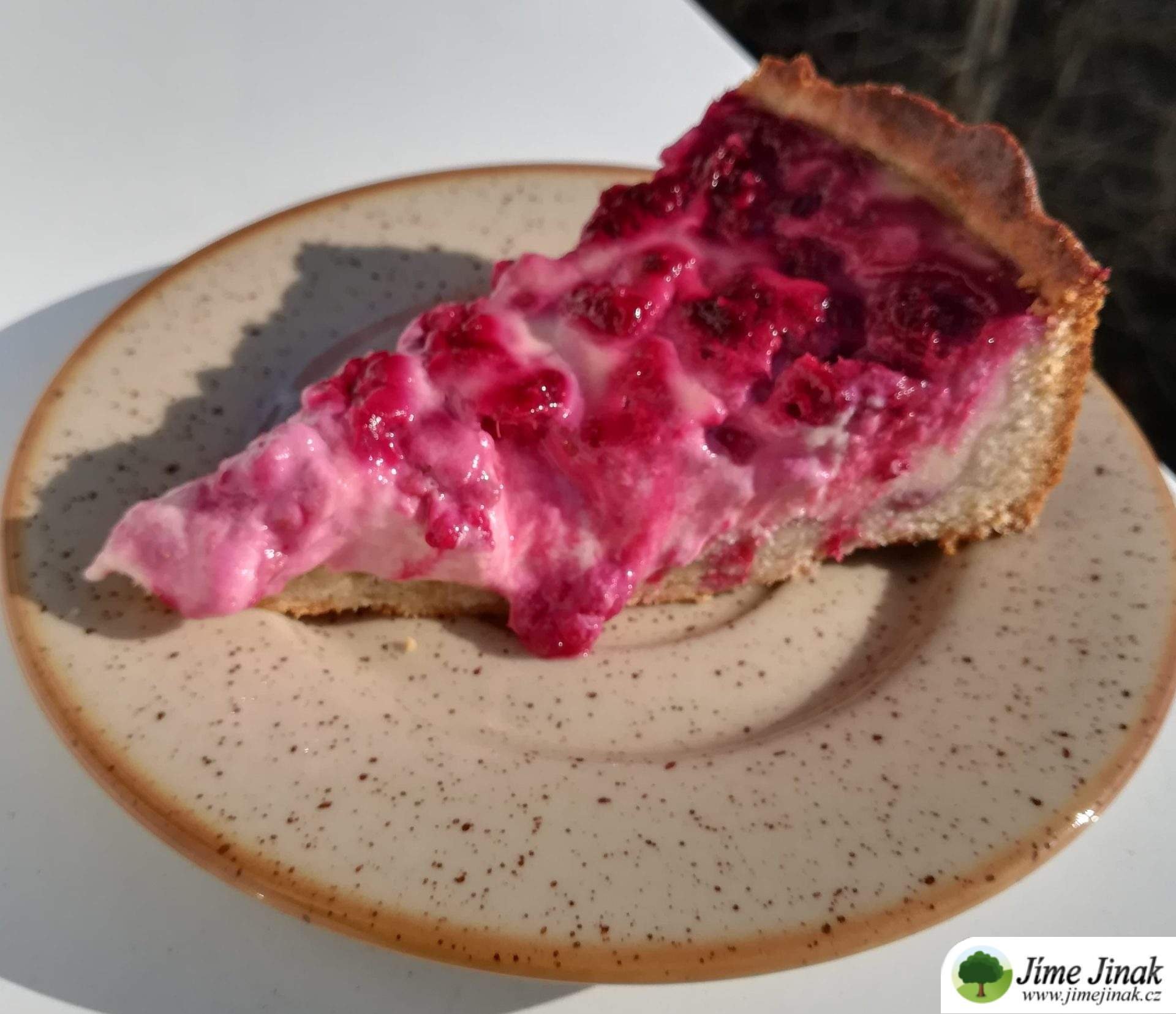 - Potřeme krémem, který jsme vytvořili z ingrediencí na krém. Vody dejte asi 200 ml, krém nebude uprostřed úplně tuhý, při krájení stéká, viz.foto.Pokud chcete aby držel tvar, tak dejte méně vody nebo přidejte ještě jedno tofu. Je pravda, že i mražené maliny můžou způsobit že je hmota tekutější.
