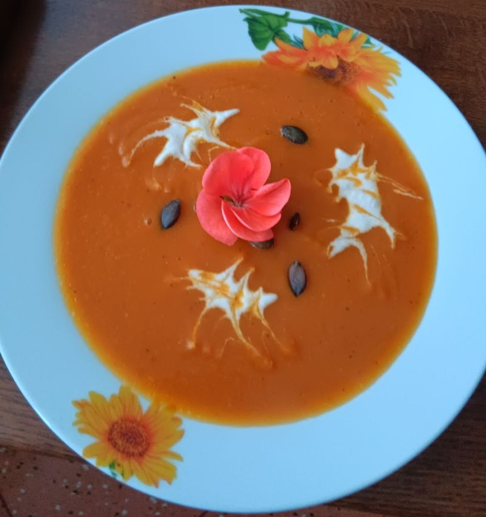 - Mrkev můžete vynechat a udělat polévku čistě dýňovou. Já ji tam dávám, protože to dodá chuti na plnosti a protože většinou šetřím s dýní, takže mrví část dýně nahradím.