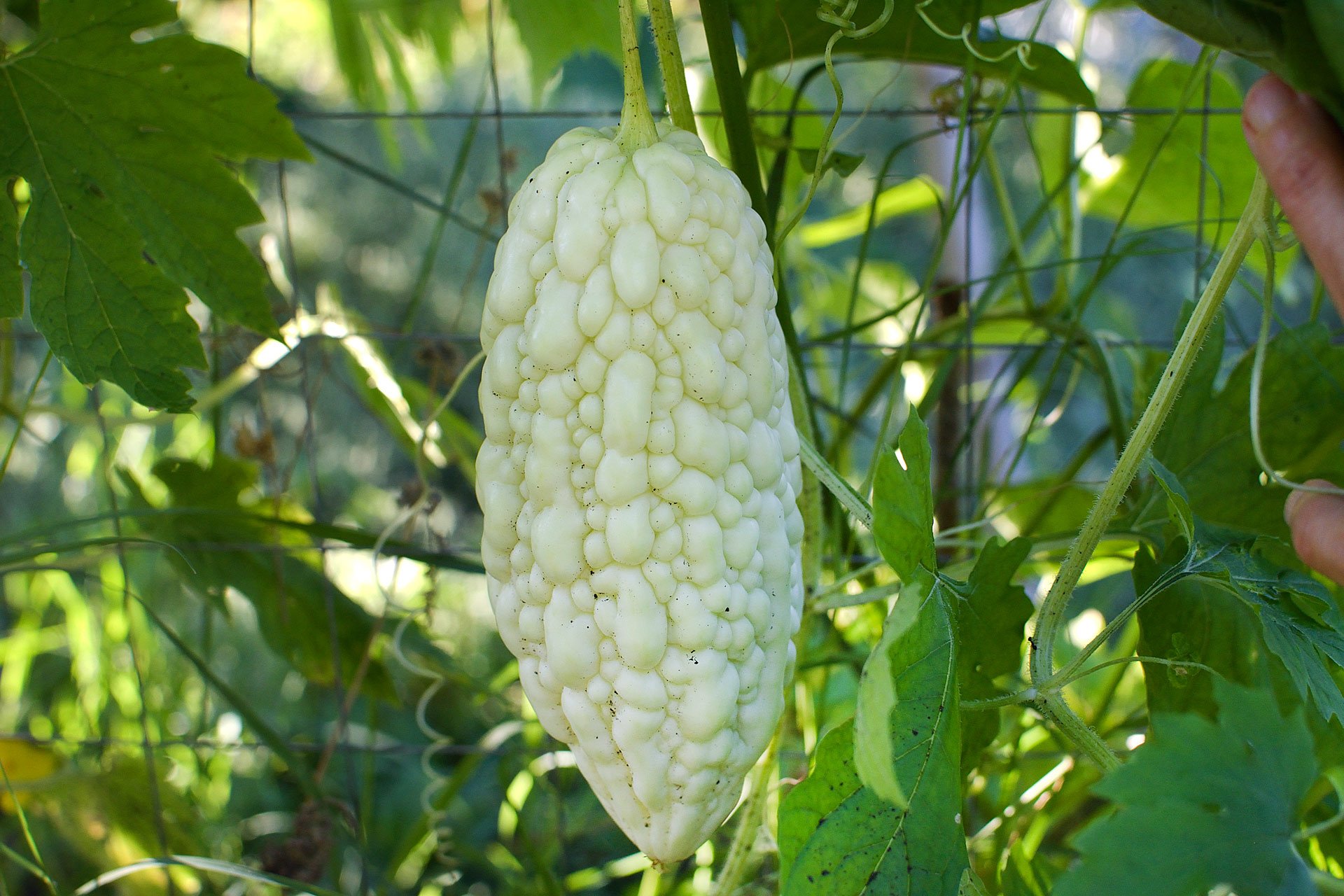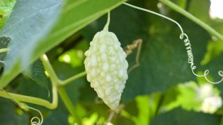 Hořká okurka (Momordica charantia) je popínavá rostlina patřící do čeledi tykvovitých (Cucurbitaceae), podobně jako okurky. Pochází z tropické Asie a Afriky, je to jednoletá rostlina s popínavým tvarem a štíhlým stonkem. Vypadá křehce; jak může mít tak velké plody?