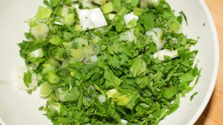 - Nasekejte čerstvou cibulku a petrželku.