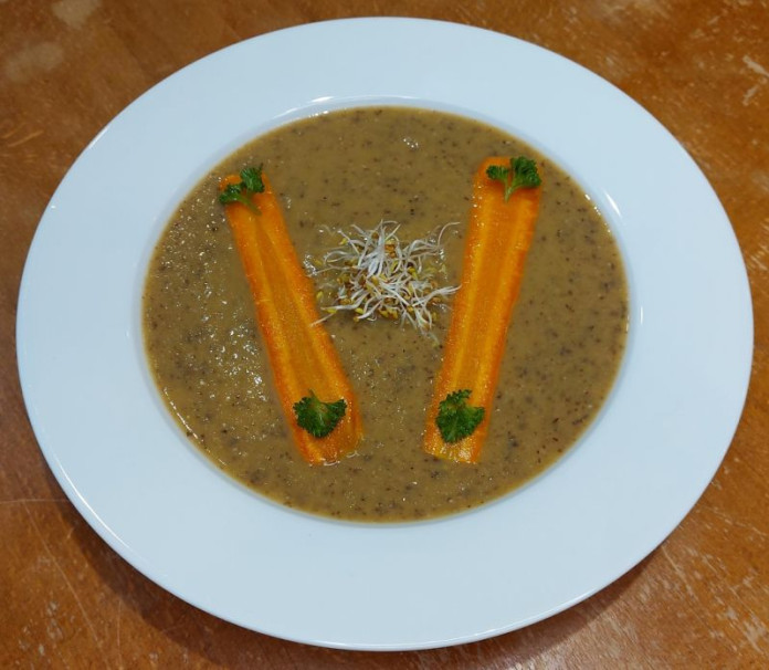 - Uvaříme předem namočené mungo, dochutíme lehce umeoctem a solí. Není potřeba žádné koření, mungo je samo o sobě velmi chutné. Lehce pomixujeme, kdo má rád, tak až do hladka.