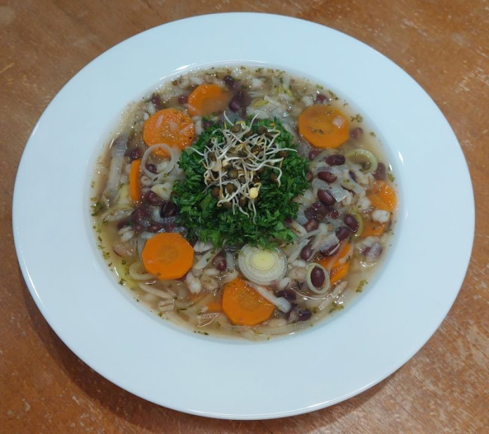 - Pokud máme fazolky adzuki a kroupy uvařené den dopředu, pak je polévka hotová do 20minut.