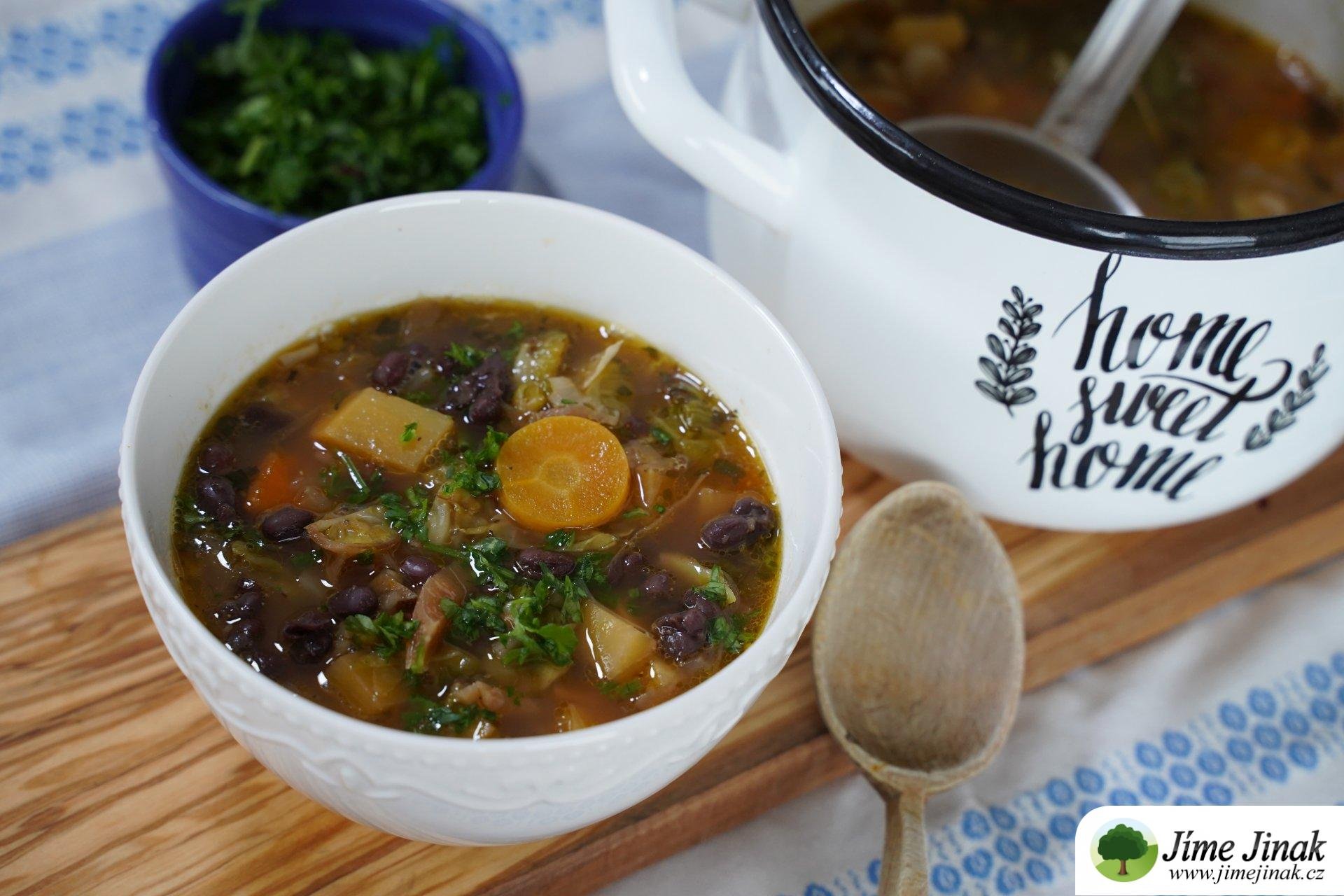 - Když je zelenina měkká, přidáme prolisovaný česnek a majoránku. Necháme ještě lehounce povařit, prohřejeme s fazolemi a vypneme.
