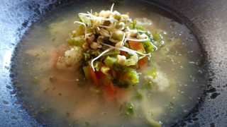 - V malém množství horké polévky rozmícháme asi 2 lžičky misa a zamícháme do polévky.