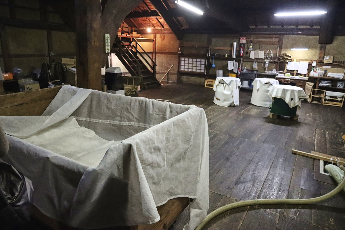 Mohli jsme tak vidět autentické „stodoly“ a „půdy“ a místo na výrobu koji, shubo, ochlazování rýže, atd. Mohli jsme vidět letité dřevěné nádoby na napařování rýže, kladkostroje a další „pomocníky“ ve výrobě. Až mi to místy připomínalo skanzen, ale s tím rozdílem, že je to vše funkční a slouží svému účelu dodnes. Také jsem odsud přivezl saké celému týmu do Kojibakers, aby mohli sami ochutnat.