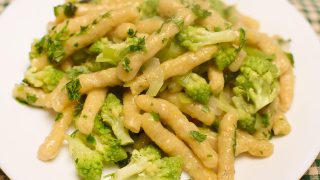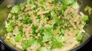 - Jakmile je brokolice dušená – ne rozvařená, přidejte nočky, petrželku, promíchejte a servírujte.