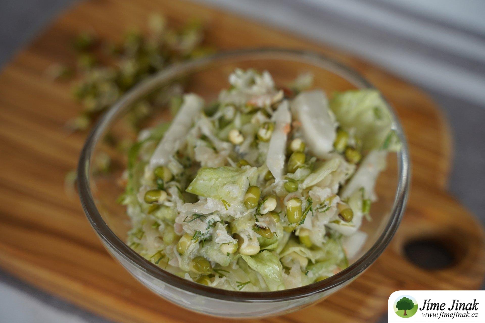 - Všechnu zeleninu a klíčky munga dáme do mísy, přidáme smetanu, ocet a kopr. Podle potřeby můžeme přidat pár lžic vody.