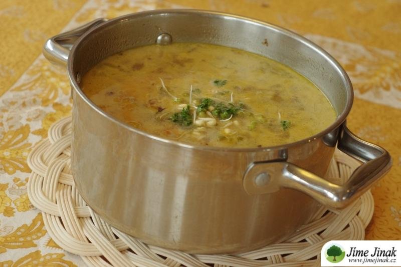 - Na závěr přidáme do vypnuté polévky podle chuti obilné mléko či rostlinnou smetanu a umeocet.
