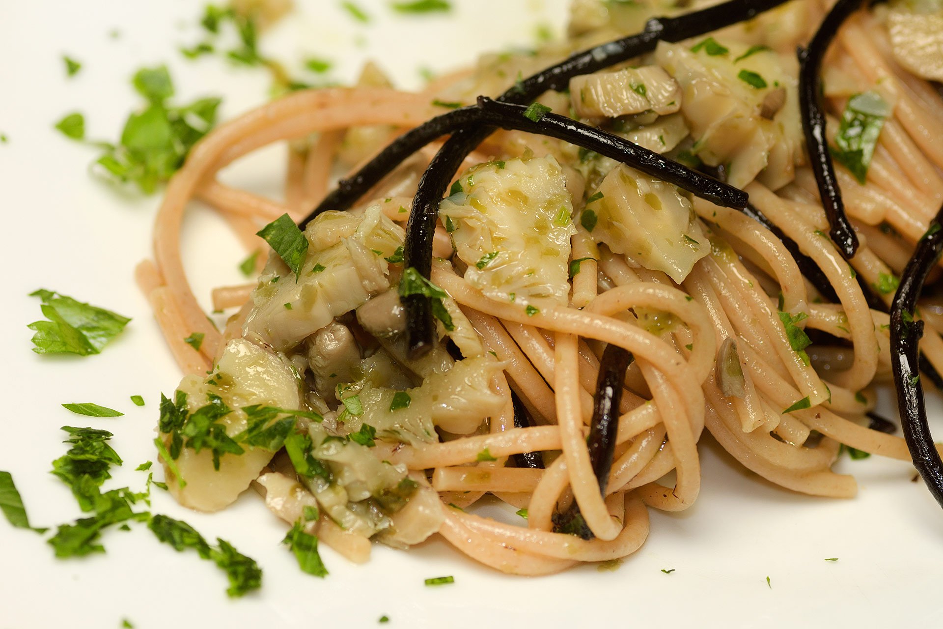 - Těstoviny uvařte společně s Hijiki, sceďte a přidejte je do pánve a orestujte na silném plameni. Posypejte čerstvou petrželkou.