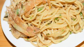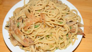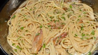 - Uvařte špagety a přidejte je na pánev s několika lžícemi vody, ve kterých se vařily. Zvyšte plamen, promíchejte a dovařte do zhoustnutí.