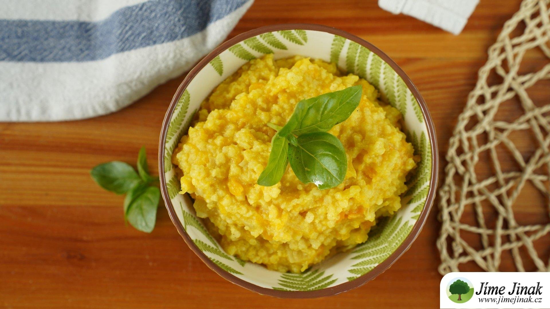 - Přidáme dýni, okapané jáhly, kurkumu a podlijeme vodou.