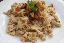 - Místo halušek můžete dát i uvařené těstoviny (např. fleky nebo kolínka).