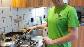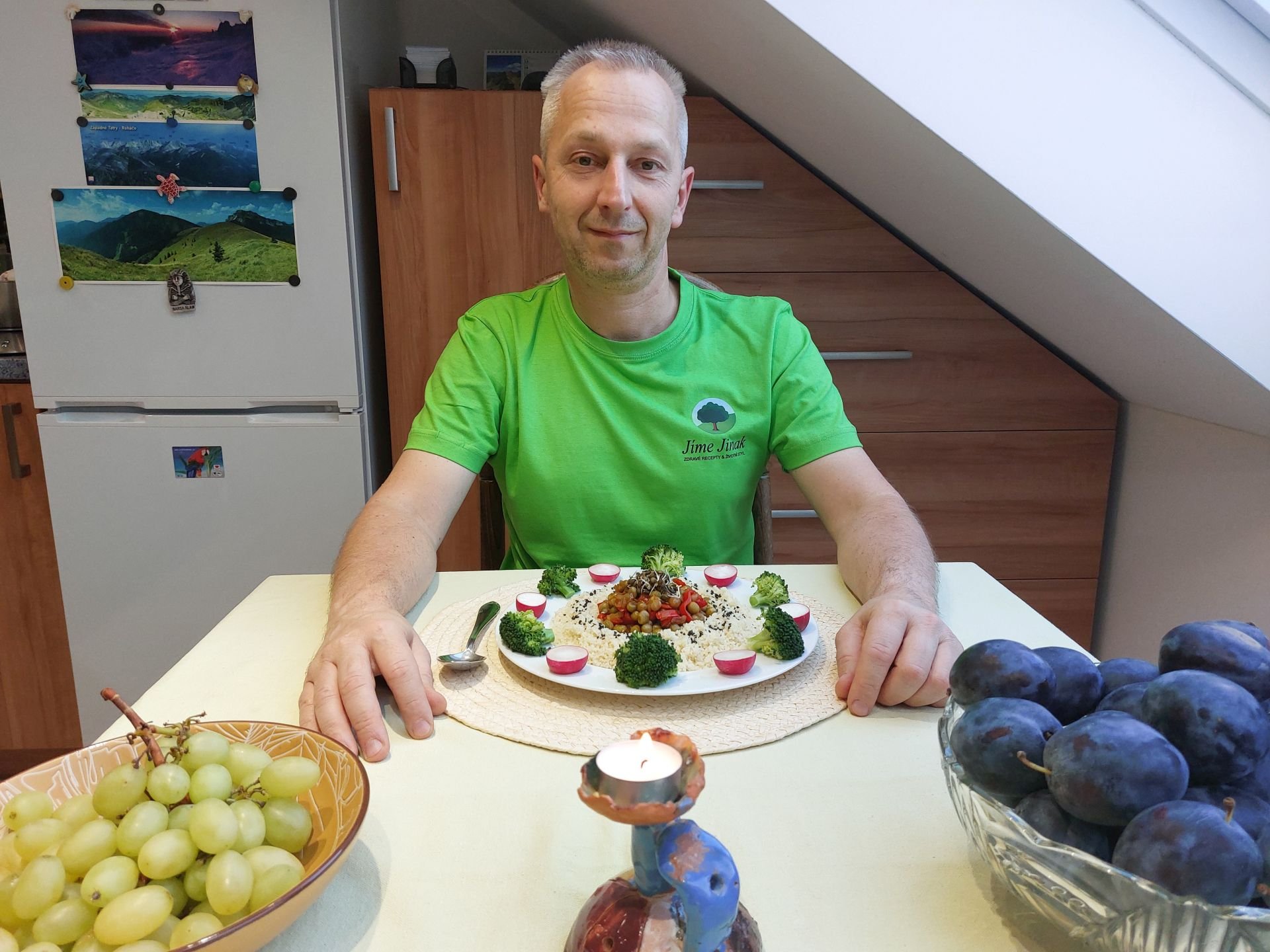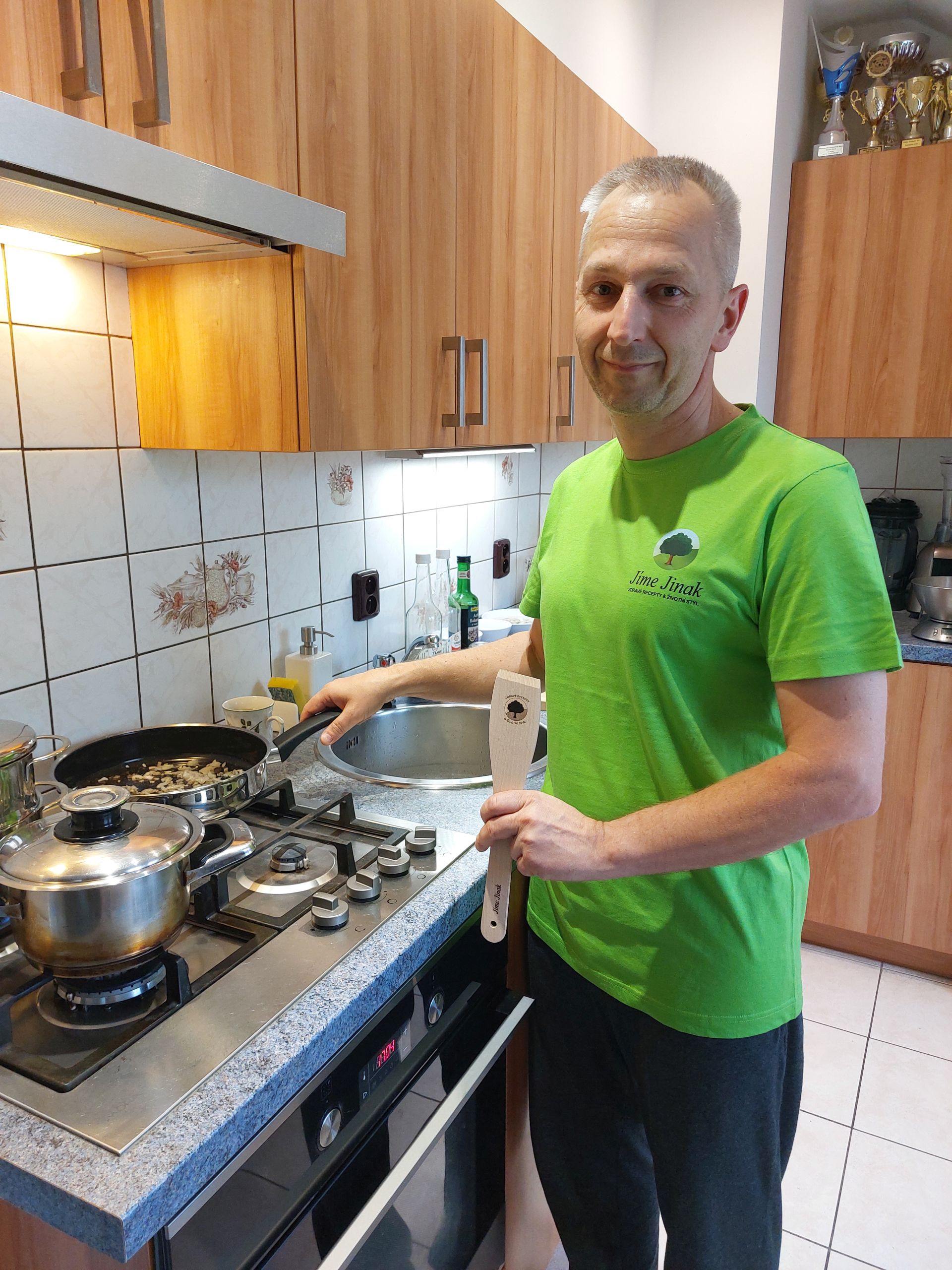 A to milé překvapení, co na mě přichystala Eva Cikrytová, tak to jsem tedy opravdu nečekal. Dostal jsem firemní tričko Jíme Jinak a Evička mi oznámila, že mě považuje za součást týmu. Wow, to bylo velmi příjemné, i když pro mě trochu šokující. Já se mnohdy při tom mém vaření necítím úplně jistě a v mnohém si přijdu stále jako nováček.