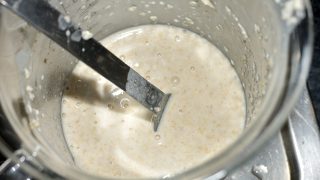 - Do nádoby dejte vločky a 300 g vody. Rozmixujte tyčovým mixérem.