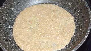 - Lehce potřete pánev olejem a nalijte ne příliš tenkou vrstvu, kterou za pomoci lžíce rozetřete. Pečte pár minut a poté špachtlí otočte. Opečte druhou stranu.