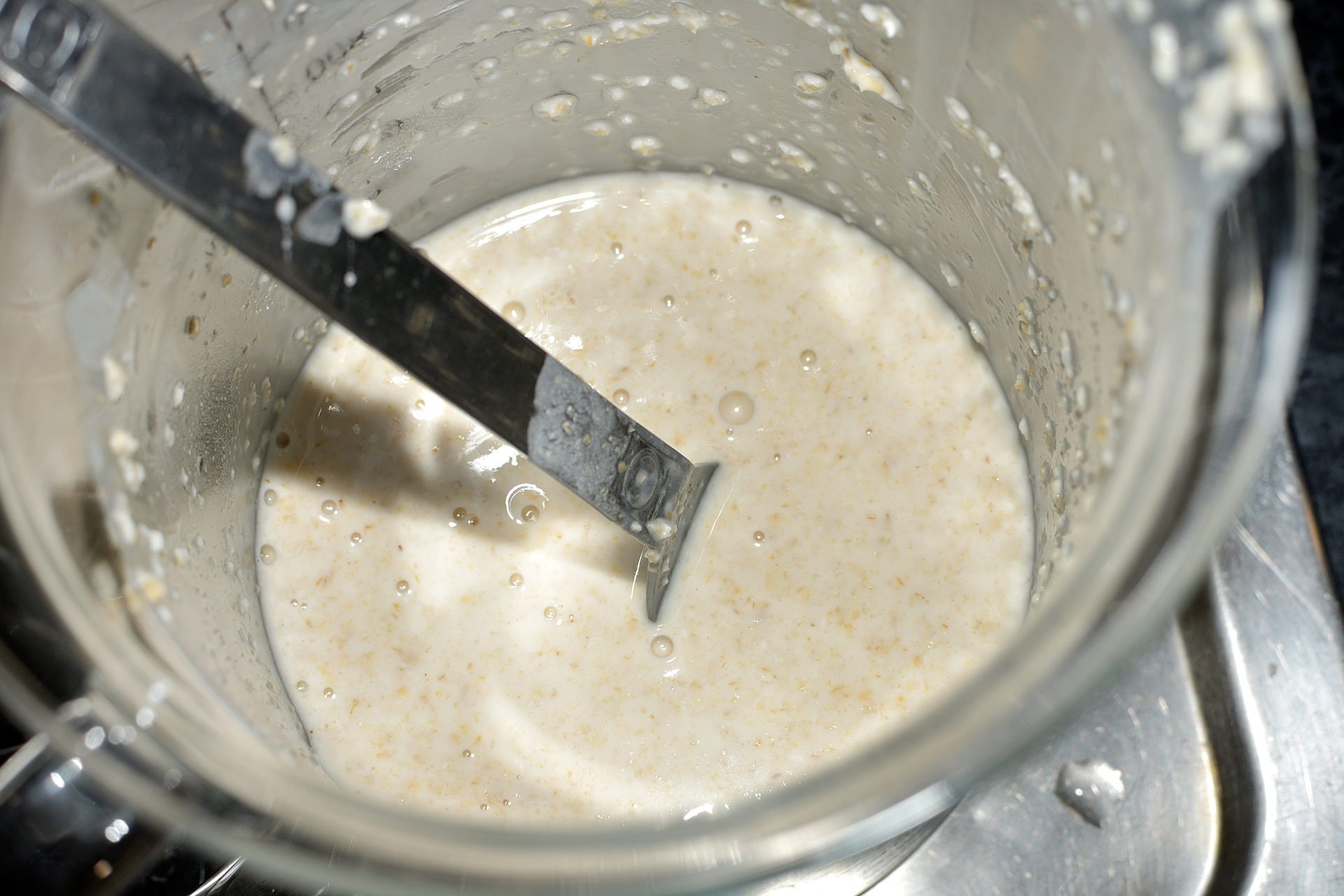 - Do nádoby dejte vločky a 300 g vody. Rozmixujte tyčovým mixérem.