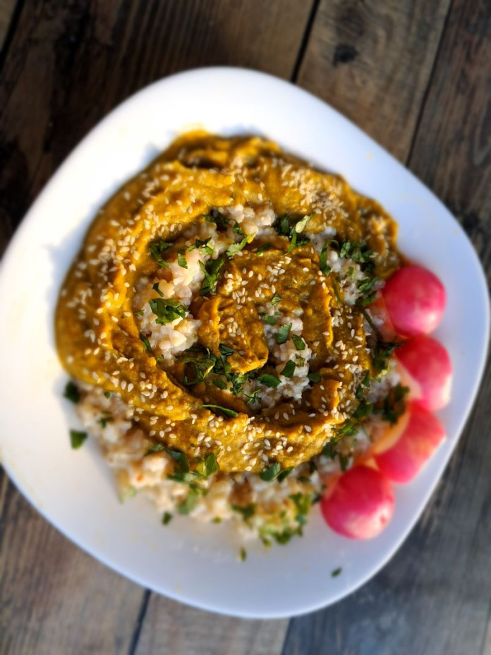 Manžel se ke mně nepřidal, tak jsem stále vařila nadvakrát, ale dalo se to skloubit. Má rád maso a to se vždy rychle připraví. Dnes jsem upekla kváskové rohlíky- už podruhé a snědl dva! Nemá tak vytříbený jazýček, takže nepoznal, že je kváskový. Nemá rád novoty. Protože vařím jen pro sebe, nezapínám troubu, abych něco upekla, ale mně chutnají jídla na způsob kaší, tak to podle toho na talíři vypadá.