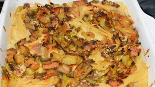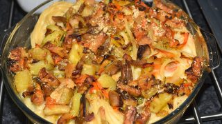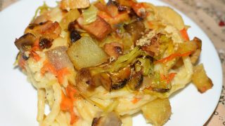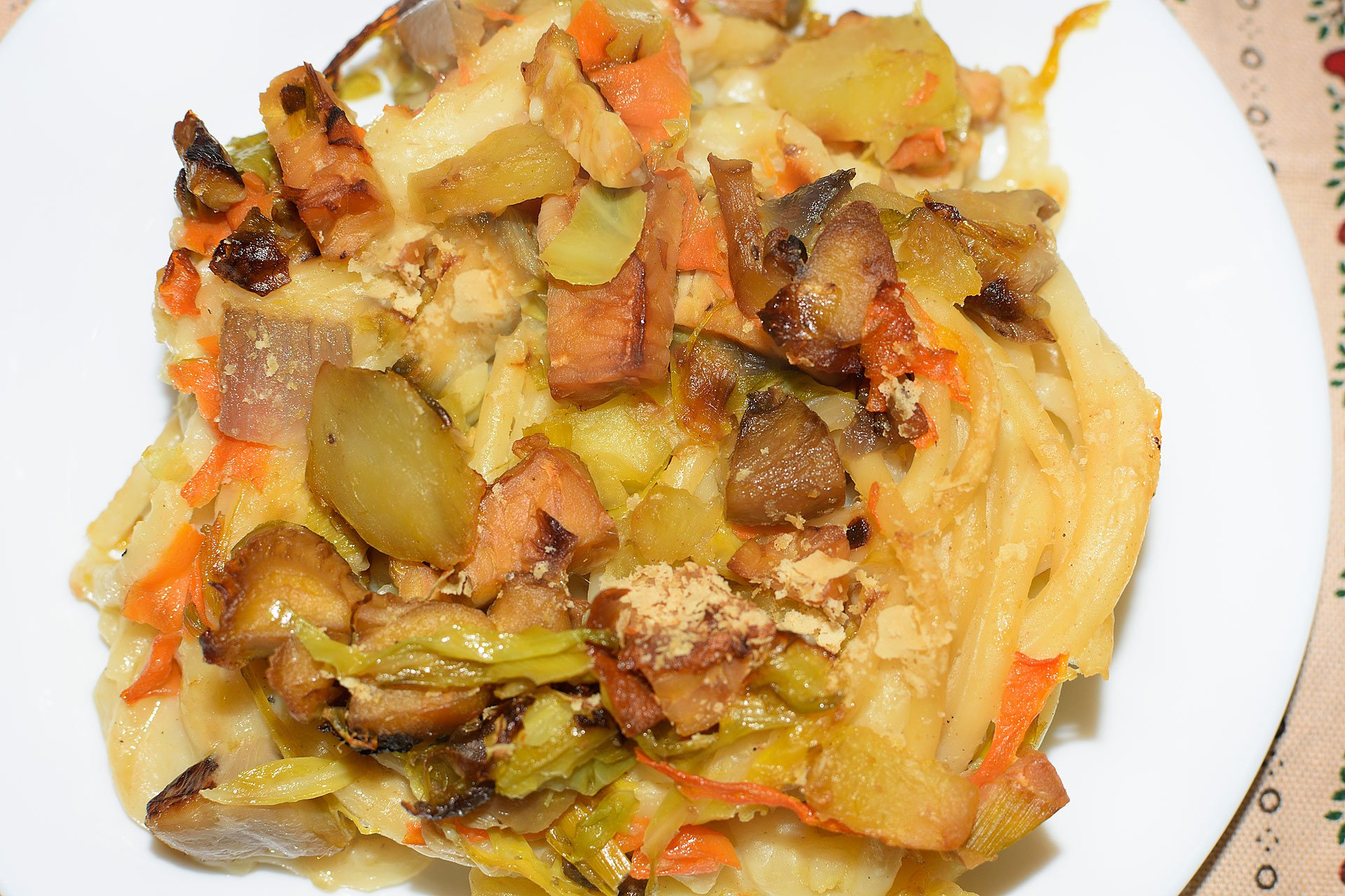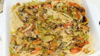 Recept na zapečené těstoviny se zeleninou, hlívou a tempehem