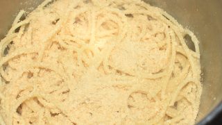 - Poté tvořte hnízda nebo klidně udělejte vrstvu těstovin a přidejte směs z pánve.