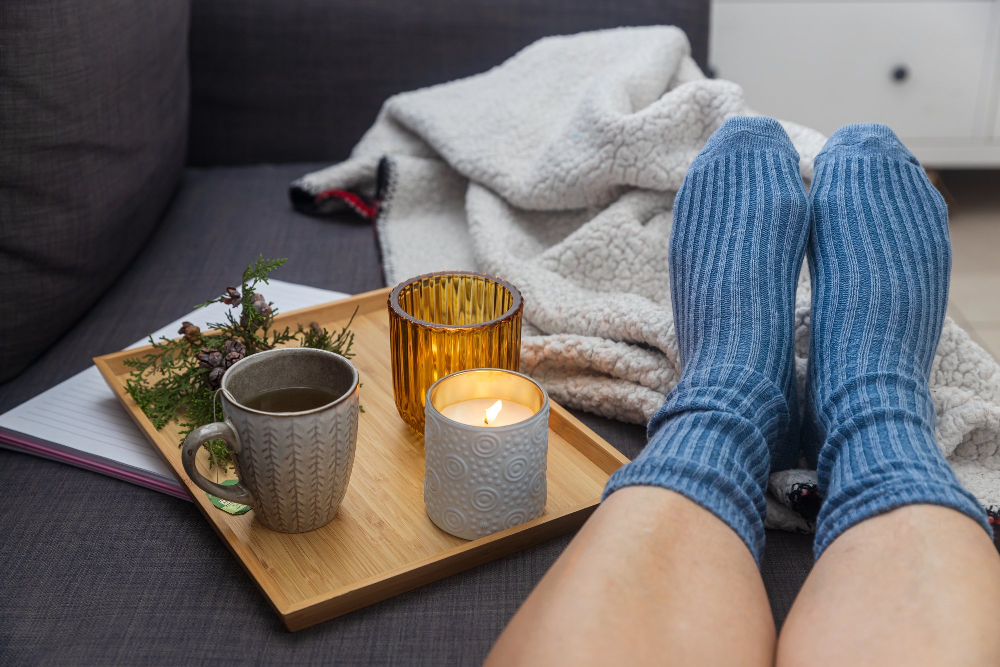 Večer se laďte na zpomalení a ztišení – Zkuste postupně ztlumit světla, ztišit okolí i vlastní tempo. Omezte sledování obrazovek, které stimulují mozek, a dopřejte si jemný večerní rituál – šálek teplého čaje z meduňky, teplou sprchu, chvíli čtení, jemné protažení nebo prožití vděčnosti za den. Před vlastním ulehnutím dobře vyvětrejte místnost, mobil si nechte v jiné místnosti a vypněte elektroniku ze zásuvky.